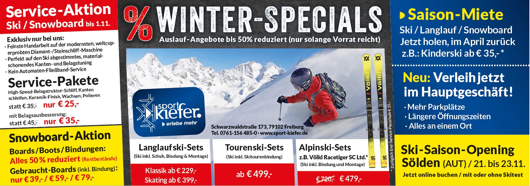 Sport Kiefer ist seit 2002 ununterbrochen Testsieger im Freiburger Kundenspiegel. Im Rahmen des Freiburger Kundenspiegels werden alle drei Jahre, durch das unabhängige Marktforschungsinstitut MF Consulting, Kunden hinsichtlich ihrer Zufriedenheit zu Geschäften und Unternehmen aus unterschiedlichen Branchen befragt, u.a. zu Freiburgs Sportgeschäften.